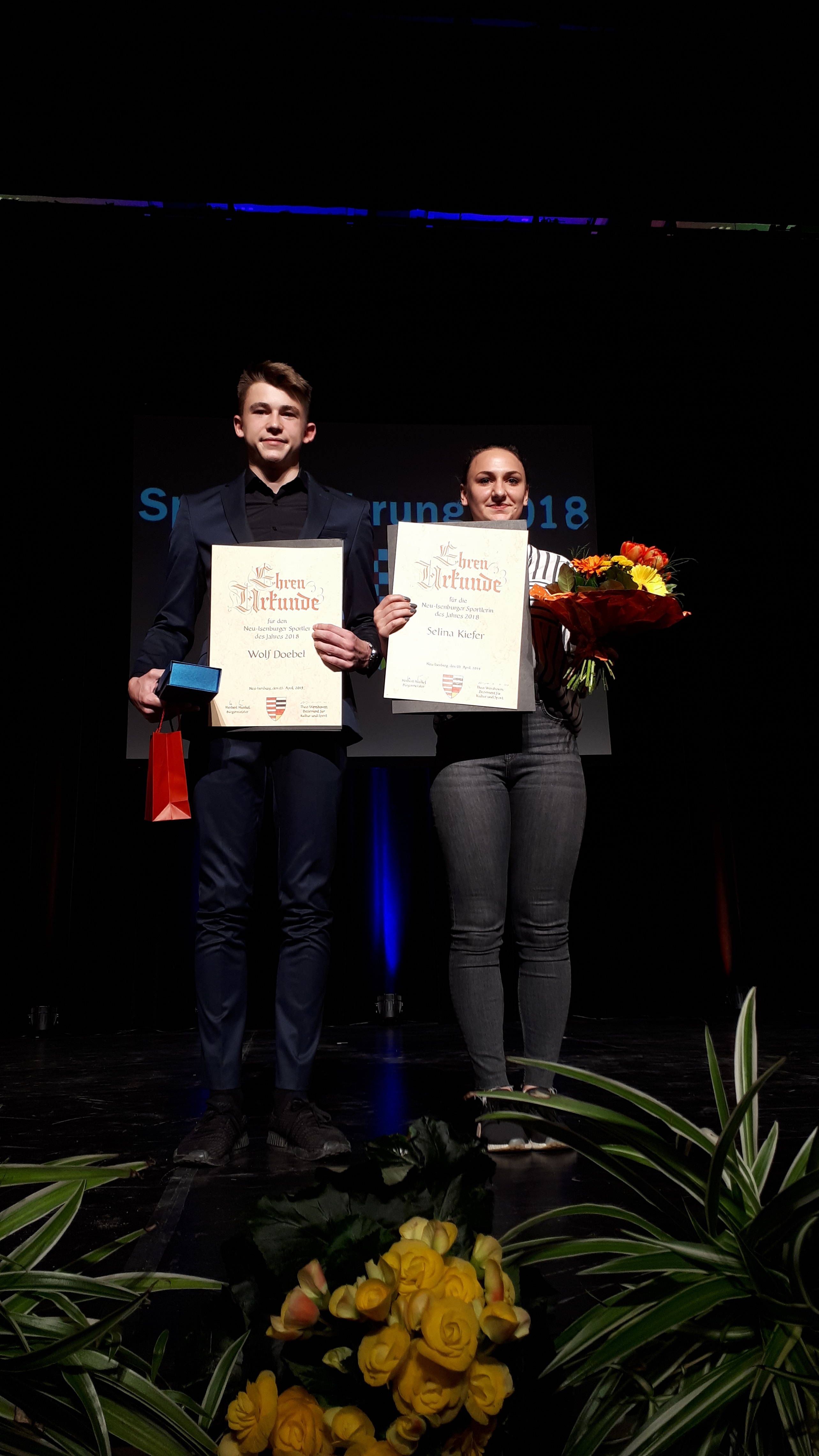 Die Wahl zur Sportlerin oder zum Sportler des Jahres war im Vorfeld zu keinem eindeutigen Ergebnis gekommen. „Die Jury stand in diesem Jahr vor einer besonders schwierigen Aufgabe“, sagte Theo Wershoven, NeuIsenburgs Dezernent für Sport und Kultur. Sowohl Wolf Doebel als auch Selina Kiefer hatten in der Bewertung der unabhängigen Jury exakt die gleiche Punktzahl erzielt. „Somit beschloss die Jury in dieser Patt-Situation, dass erstmals ein Duo ganz oben auf dem Podest stehen soll“, verkündete Theo Wershoven unter großem Beifall der Gäste im Saal der Hugenottenhalle die Entscheidung. Somit wurde Wasserspringer Wolf Doebel (Höchster Schwimmverein) zum Sportler des Jahres und Selina Kiefer (Turnen, TV Neu-Isenburg) zum zweiten Mal zur Sportlerin des Jahres gekürt. (StadtPost Neu-Isenburg)