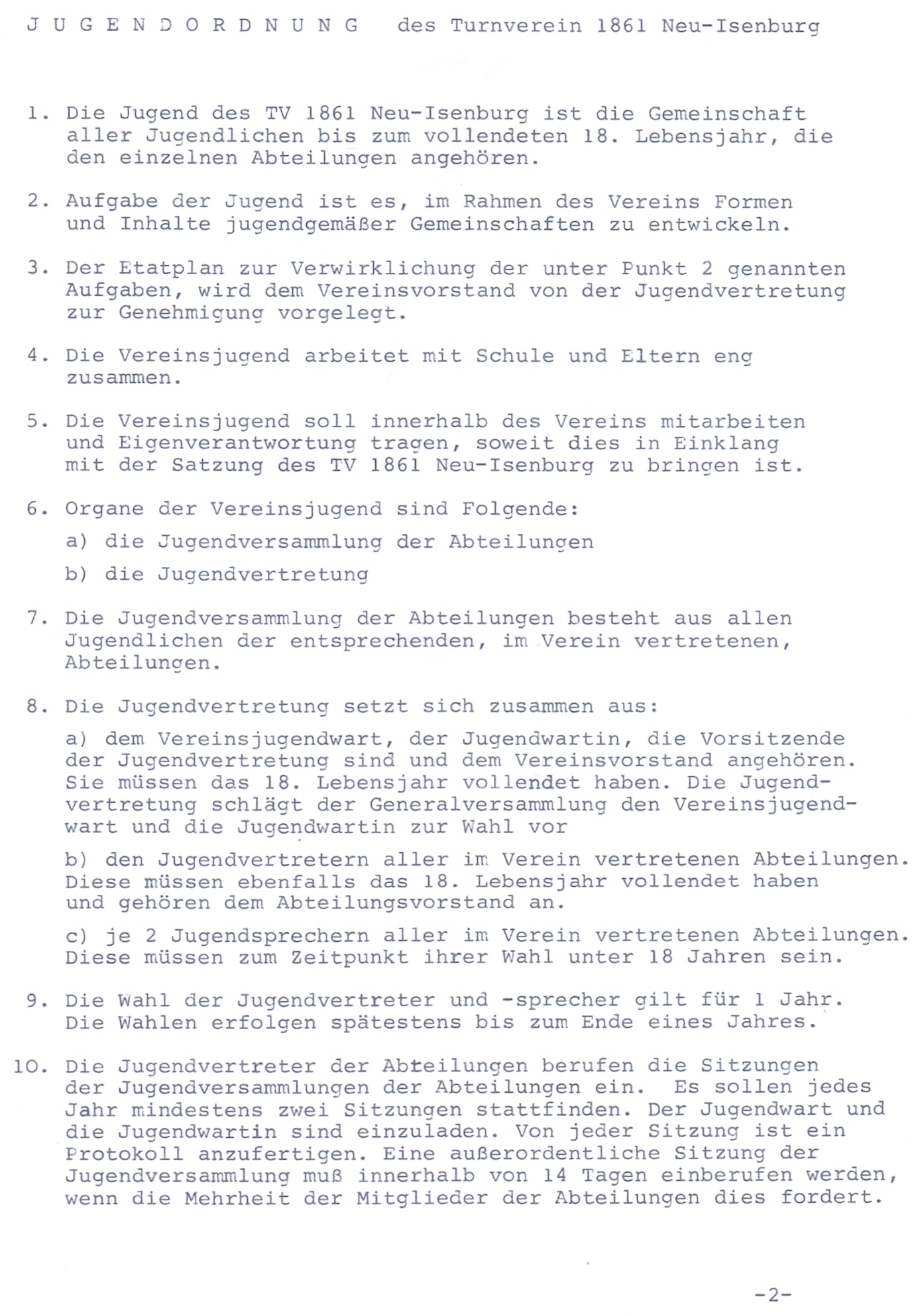 Die Jugendordnung ist Bestandteil der Vereinssatzung.